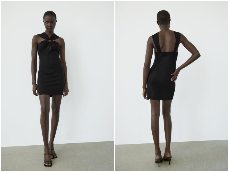 Seguimos con la lista de vestidos de invitada de boda de Zara que hemos seleccionamos para que puedas vestir en verano. Elegimos este vestido corto con tirantes anchos y detalle de arandela forrada en pecho. Su composición es 79% viscosa, 16% poliamida y 5% elastano. Lo consigues en los talles del S al M y está rebajado en un 30%. Lo consigues a un precio de lista de 12,99 euros.