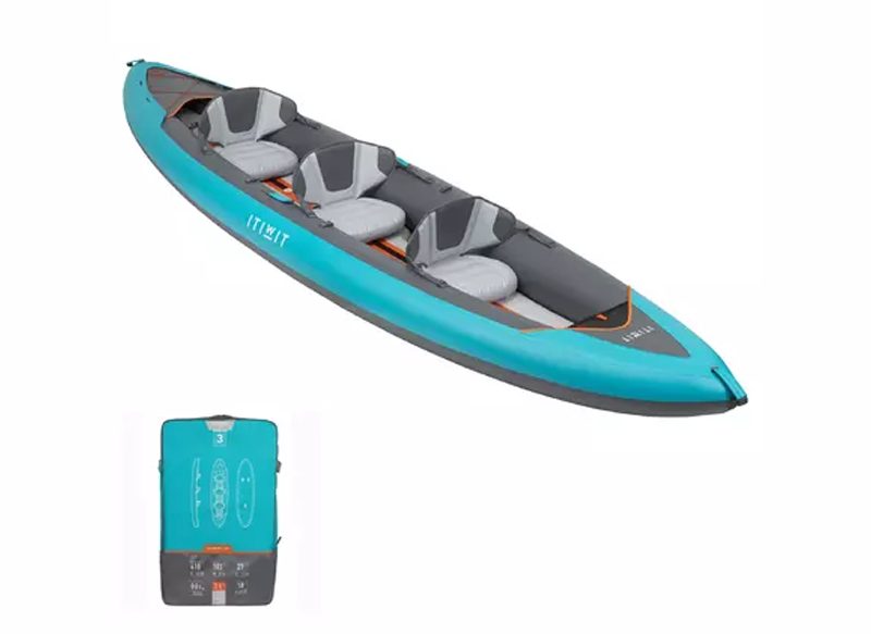 Es una canoa kayak inflable sólida, con fondo Drop stitch de alta presión, que ofrece tres plazas elevadas para conseguir el mayor confort de remo. Permite disfrutar de un buen equilibrio entre rendimiento y estabilidad. Gracias a su rebaja del 18%, puedes hacerte con él por 449,99 euros.