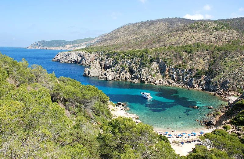Puedes estar tranquilo porque aquí nunca llegan los tradicionales turistas que visitan la isla. Estamos ante un paisaje lleno de pinos, acantilados y rocas. No es la única, en Ibiza puedes encontrar muchas más.