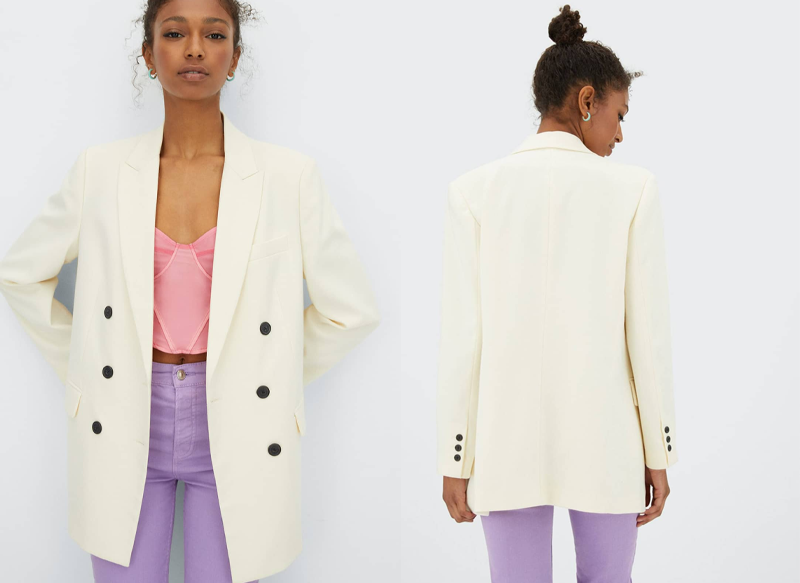 En Stradivarius está rebajada esta americana cruzada que se encuentra a la venta en colores crudo, azul eléctrico, naranja melocotón, verde y verde claro, teniendo un precio de venta de tan solo 19,99 euros, lo que supone una rebaja del 44%.