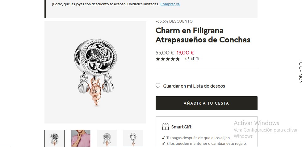 El charm se presenta con un acabado texturizado y detalles de conchas colgantes. Además, cuenta con un acabado a mano en plata de primera ley con un toque de con un recubrimiento electrolítico en oro rosa de segunda ley de 14k. inclusive, con aleación única de metales con un recubrimiento en oro de segunda ley de 14k. Si la desean comprar solo tienen que entrar a Pandora por un precio de 19,00 €.