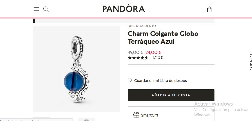 Es un charm que tiene un cristal de color azul luz de luna que se enmarca en un anillo meridiano de esferas que gira 360 grados en nuestra moderna interpretación del globo terráqueo tradicional. Además, es una joya que está elaborada en plata de primera ley, que se presenta con la inscripción Wonderful World. Entonces, si la desean comprar solo tienen que entrar a Pandora por 24,00 €.