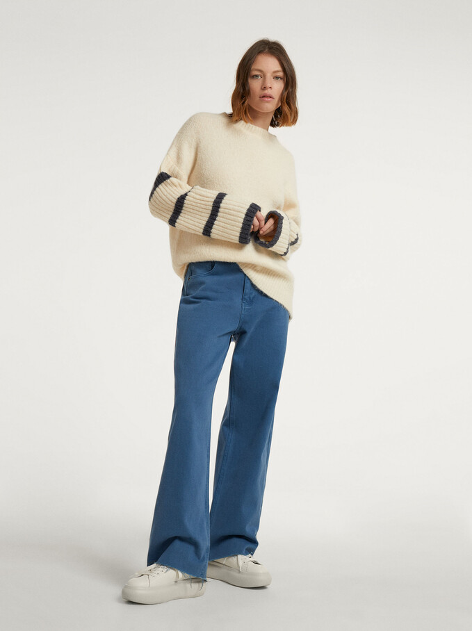 Nada más cómodo para cualquiera de tus diversa actividades, que este Pantalón ancho de tiro alto, con perneras ajustadas y bajos acampanados, una prenda muy moderna que podrás modelar cualquier día del año.