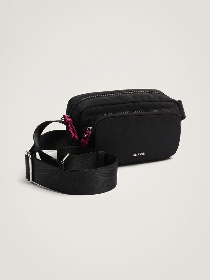 Imposible que Parfois deje por fuera sus bolsos en cualquiera de sus rebajas. Visita una de sus tiendas y busaca el Bolso bandolera de nylon con cordón, con su asa totalmente ajustable a la medida que desees portarlo.