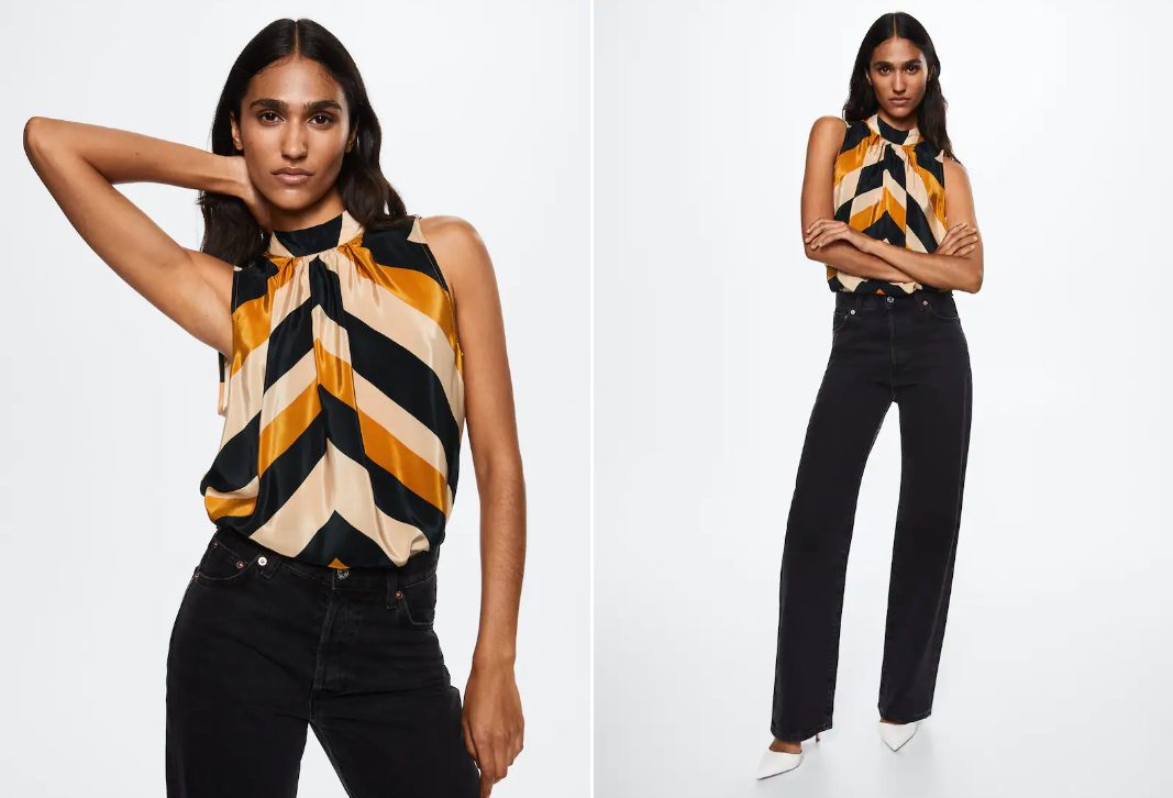 Las prendas de diseño vintage son unas de las más buscadas esta temporada. Por este motivo, llama tanto la atención esta bonita blusa de Mango. Con acabado satinado, estampado de rayas y tonos tan vibrantes como el negro o el naranja, te puedes hacer con ella por solo 25,99 euros. Perfecta para combinar con todo.