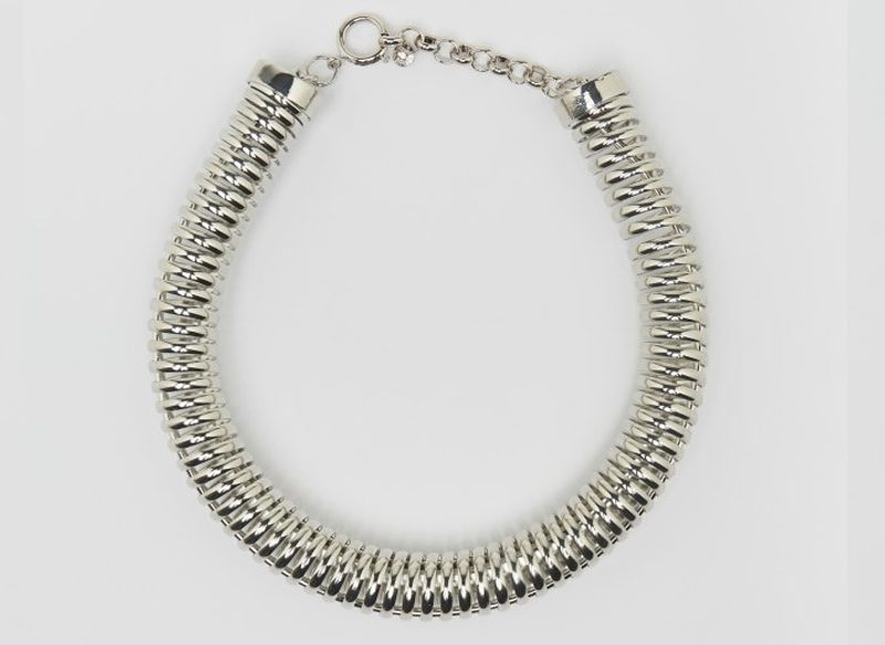Fabricado totalmente en metal, es un collar que podrás combinar de maneras muy diversas para conseguir darle a tus outfits el toque definitivo. Puede quedar muy bien con una gran cantidad de prendas, siendo un choker muy versátil. Atendiendo a su relación calidad – precio, es un imprescindible para que forme parte de tu armario. Es uno de los collares más interesantes que se pueden encontrar en el catálogo de accesorios de la firma.