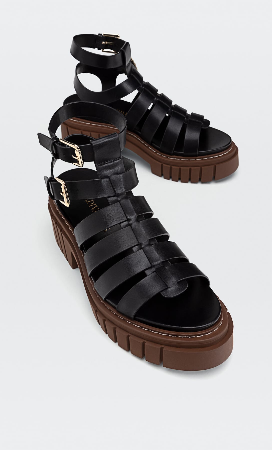 Las sandalias de estilo cangrejero son otra de las mejores opciones de cara al verano. En este caso, destacan sobre todo estas, con suela track en color marrón, que ya están disponibles en la sección de rebajas de Stradivarius. Con tiras hasta el tobillo y fáciles de llevar, ahora las puedes conseguir por solo 19,99 euros cuando antes costaban 39,99.