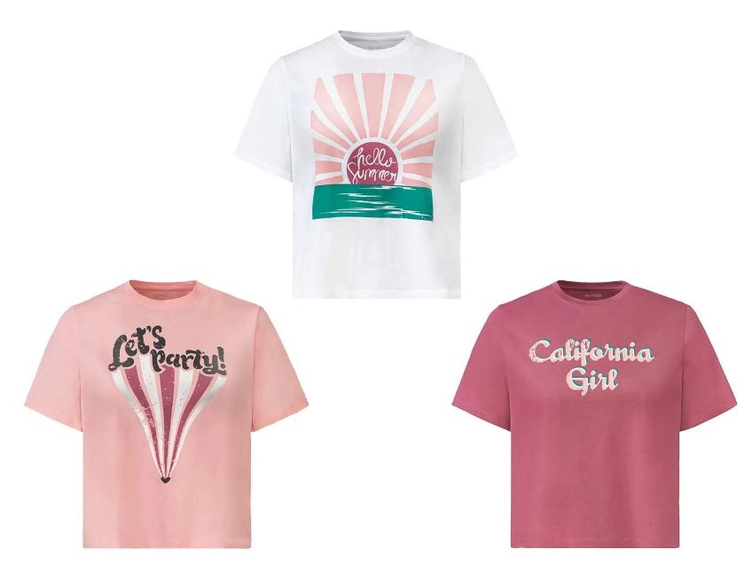 Esta camiseta tiene un corte básico y sencillo, pero a la vez resulta bonita y favorecedora. El diseño es corto (pero no cropped), lo que le da un toque muy informal, para combinar con shorts o vaqueros. Está confeccionada con algodón puro, así que también es cómoda, ligera y transpirable. El cuello es redondo y hay talla desde la S hasta la L. Se puede elegir entre tres colores: rosa, rosa claro y verde. Te la puedes llevar en Lidl por solo 3,99€.