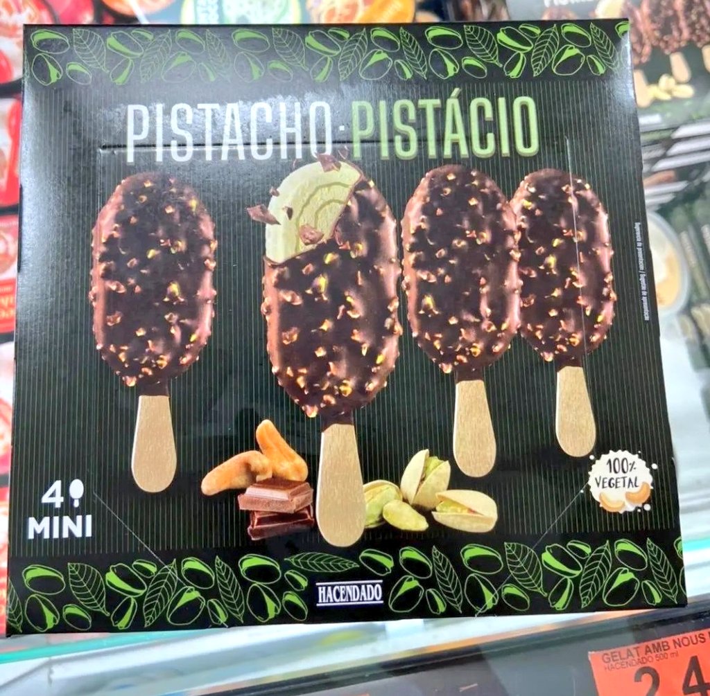 Pero hay más novedades vegetales en Mercadona, que alegrarán a personas intolerantes a la lactosa, y los que no consumen leche en general, como los veganos. Se trata del helado de pistacho, una delicia que imita al clásico almendrado, y está hecho con una crema de pistachos, base de anacardos y una cobertura de chocolate crujiente con pequeños fragmentos de almendras. Se vende en packs de cuatro unidades por 2,70 euros.