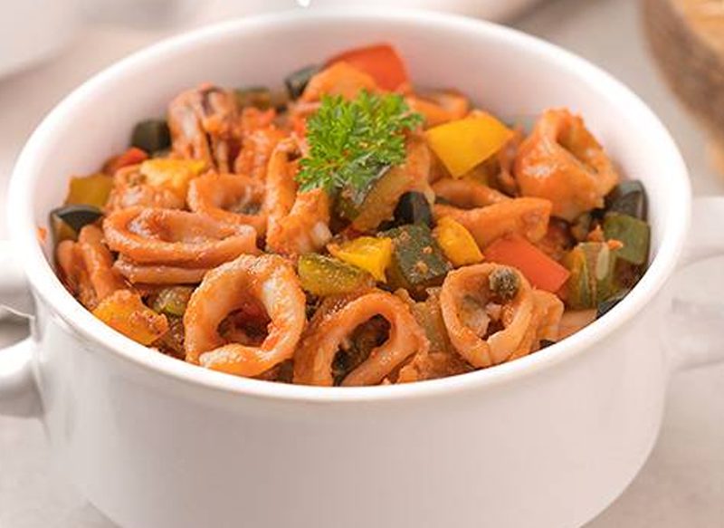 La elaboración de calamares a la mediterránea es un plato completo a nivel nutricional, ya que a la fuente de proteínas del calamar se le pueden unir si se desean diferentes verduras que hacen que se trate de un alimento aún más saludable.