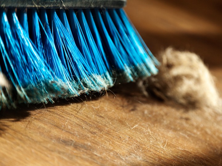 Cepillar regularmente (e incluso sólo acariciar) a tu amigo peludo produce pelo y polvo errante. Si las cepillas regularmente están fuera, o en un espacio fácil de limpiar como el baño, puedes reducir seriamente la limpieza.