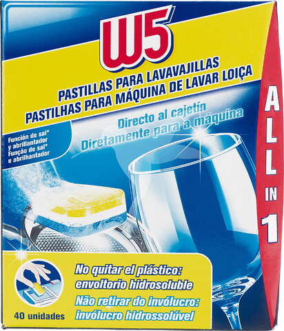 La marca blanca W5 ofrece una amplia gama de artículos para la limpieza general de la cocina, el baño y el resto del hogar, como esprais limpiadores, toallitas húmedas, detergentes líquidos, bayetas, estropajos, limpiacristales o pastillas lavavajillas, entre otros.
