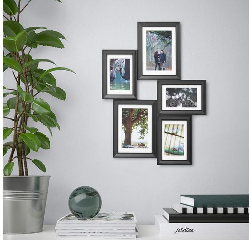 Pues bien, con una visita al outlet de Ikea te puedes ahorrar mucho dinero. Nuestra recomendación es el marco para meter hasta 5 fotos en color marrón. Y como superconsejito que te damos es que combina perfectamente en el cuarto con una cómoda Hemnes que también puedes encontrar en Ikea.