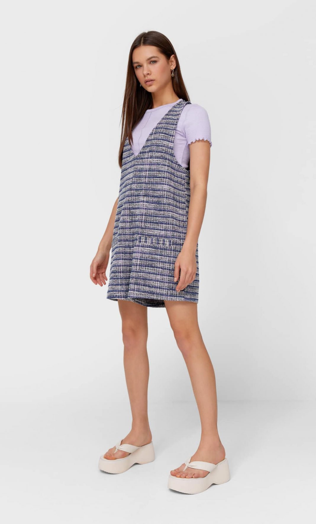 Este s un mono corto con tirantes y escote estilo pico, te caerá como un guante en tu cuerpo y hará más largas y espectacular tus piernas. Lo traemos en color lila y negro, en tallas desde la XS, hasta la XL. Su costo en la promoción de verano de Stradivarius es de 19.99 euros.