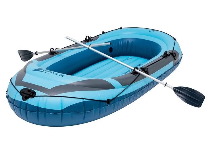 Otro de los imprescindibles para los amantes de las actividades acuáticas en verano es este fantástico bote hinchable para toda la familia, con un sistema de 3 cámaras de aire y una estructura de seguridad con paredes y proa elevadas. Está fabricado con un plástico muy resistente y de gran calidad que resiste el aceite, el ozono, las bajas temperaturas y el agua salada, y con una carga permitida de hasta 260kg. Es muy manejable e incluye 1 par de remos de aluminio con las palas reforzadas. El fondo del bote lleva un travesaño longitudinal para mayor estabilidad y comodidad.