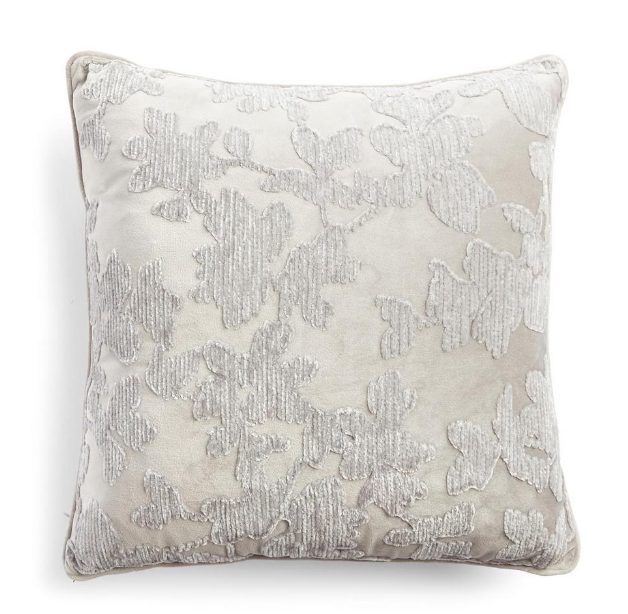 Quieres darle un toque diferente y delicado a uno de tus muebles, las tiendas Primark, para que mantengas perfectamente decorado tu hogar tienen el cojín de terciopelo plateado con textura floral.