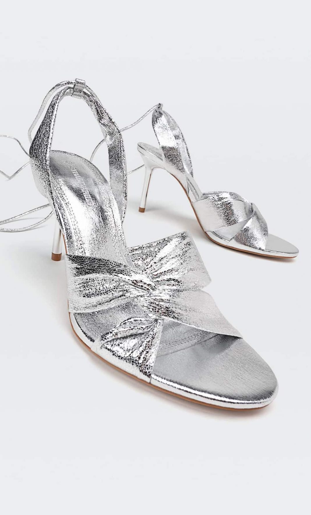 El acabado metalizado es uno de los más elegantes cuando hablamos de calzado. Por esta razón, estas sandalias de la sección de novedades de Stradivarius ya se han convertido en unas de las más buscadas. De color plateado y con detalle de nudo, te puedes hacer con ellas tanto en tienda como en web por 35,99 euros.
