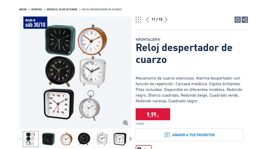Este increíble reloj despertador cuenta con un mecanismo de cuarzo silencioso. Además, tiene una alarma despertadora con función de repetición y es de carcasa metálica. Inclusive, es de dígitos brillantes, cuenta con sus pilas incluidas. Lo pueden obtener en diferentes modelos como redondo negro, blanco cuadrado, redondo beige. Hasta lo pueden comprar en cuadrado verde, redondo naranja y cuadrado negro. Para comprar estos relojes solo deben entrar a Aldi por un precio de 9,99 €.
