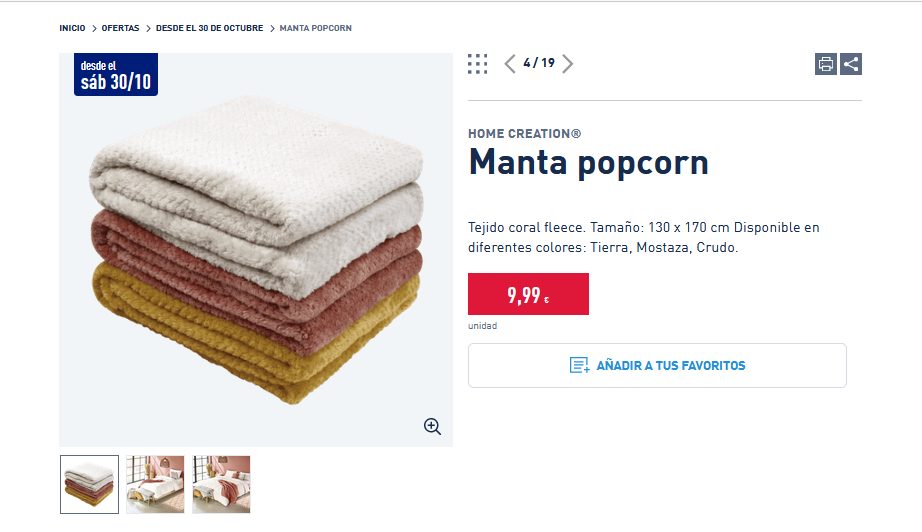 Es otro de los grandes productos que se pueden adquirir en estas grandes ofertas, dado que es una manta perfecta. Ya que, esta cuenta con un tejido coral, y tiene un tamaño perfecto que no les impedirá para ser usada para lo que quieran. Inclusive, la pueden obtener en diferentes colores, como tierra, mostaza y crudo. Si desean comprar esta manta popcorn solo deben entrar a Aldi por un precio de 9,99 €.