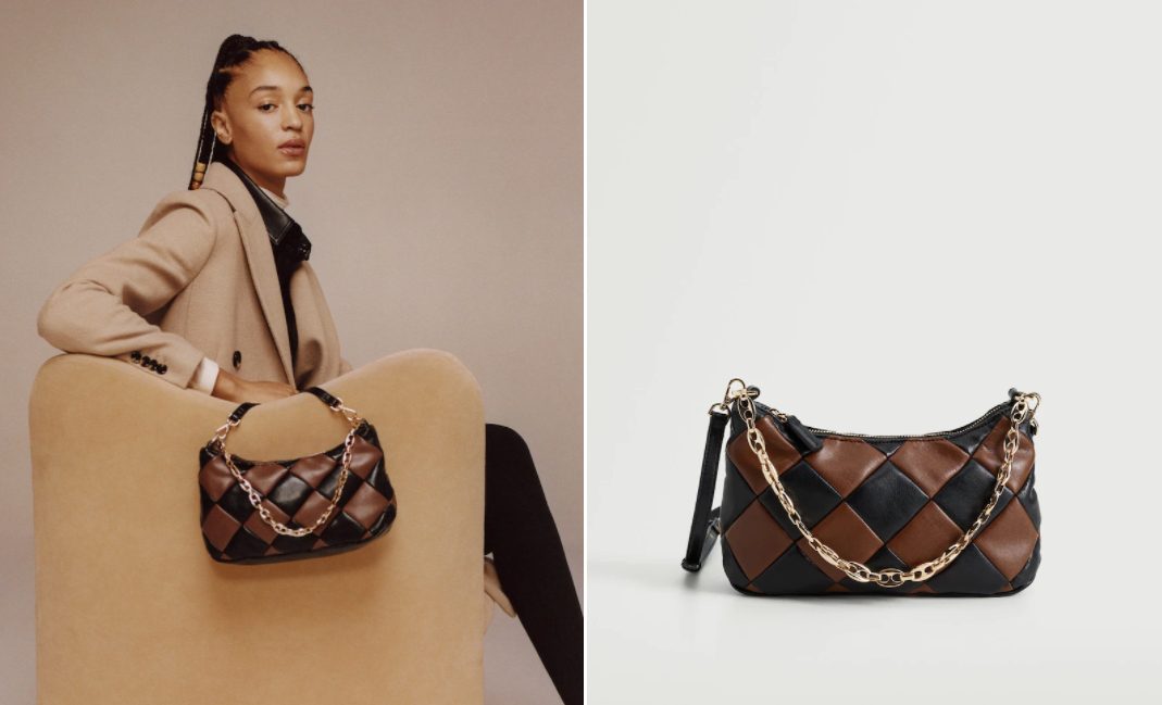 Volviendo al estilo clásico, otro de los bolsos de Mango que no querrás que falte en tu armario es este. De diseño pequeño, cómodo y con cadena, será ideal para combinarlo con todo. Cuenta con un bonito estampado de rombos en marrón y negro que completan ese estilo que tanto gusta. Además, ahora lo puedes encontrar por solo 12,99 euros cuando antes costaba 29,99. Un descuento de casi el 60%.