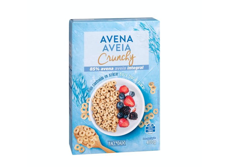 Dado que hay quienes apuestan por los cereales como postre, ya sea con leche o yogur, es conveniente destacar entre posibles postres saludables estos cereales Avena Crunchy Hacendado.