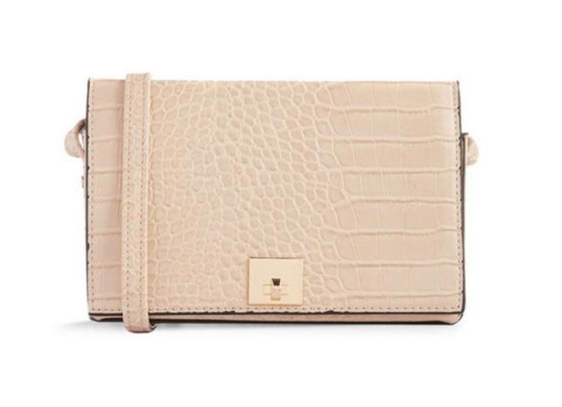 Seguimos con el listado de bolsos de Primark que cuestan menos de 10 euros y que arrasan en verano. Hemos visto este bolso cruzado, casi cuadrado, de color crema y estampado con piel de cocodrilo. Incorpora una cinta para llevar al hombro o cruzado. Tiene un precio de 8 euros.