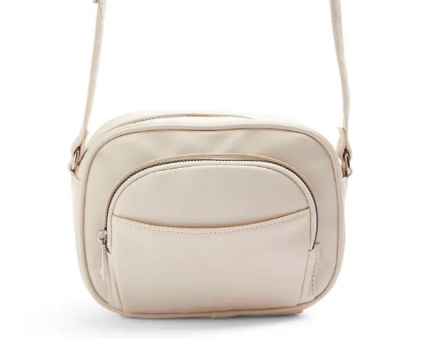 Seguimos con el listado de bolsos de Primark que cuestan menos de 10 euros y que arrasan en verano. Hemos visto este bolso tipo bandolera para cámara color crema de piel sintética. Este color de bolsos son ideales para cuando necesitamos un look rápido, versátil, pero muy a la moda. Los tonos cremas los podemos combinar fácilmente con colores neutrales como negro, blanco, azul, o un poco más fuertes como rojo, coral o verde. Tiene un precio de 8 euros.