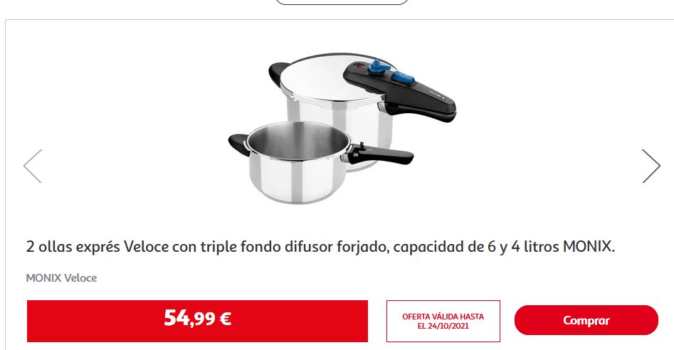 Es uno de los productos perfectos por la calidad que ofrecen estas 2 ollas exprés. Dado que, cuenta con triple fondo difusor forjado para una mayor resistencia a las ollas. Inclusive, son perfectas para preparar ricos estofados en familia, ya que estas permiten que se tenga una preparación increíble. Entonces, si desean comprar estas 2 ollas veloces solo deben entrar a Alcampo por un increíble precio de 54,99 €.