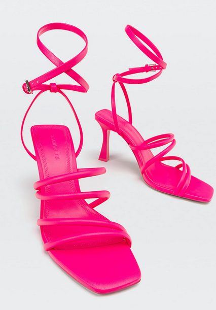 Si quieres unas sandalias llamativas que se conviertan en las protagonistas de tu look, ya has dado con ellas. Llevan tiras acolchadas entrelazadas en el empeine y cierra con una hebilla lateral. Tiene un tacón muy alto de 9,2 cm y son un llamativo color fucsia que no pasará desapercibido. Como casi todas las sandalias de Stradivarius, incorpora una cómoda plantilla de espuma moldeable que cuida de los pies y proporciona un mayor confort. Las puedes conseguir por 25,99€.