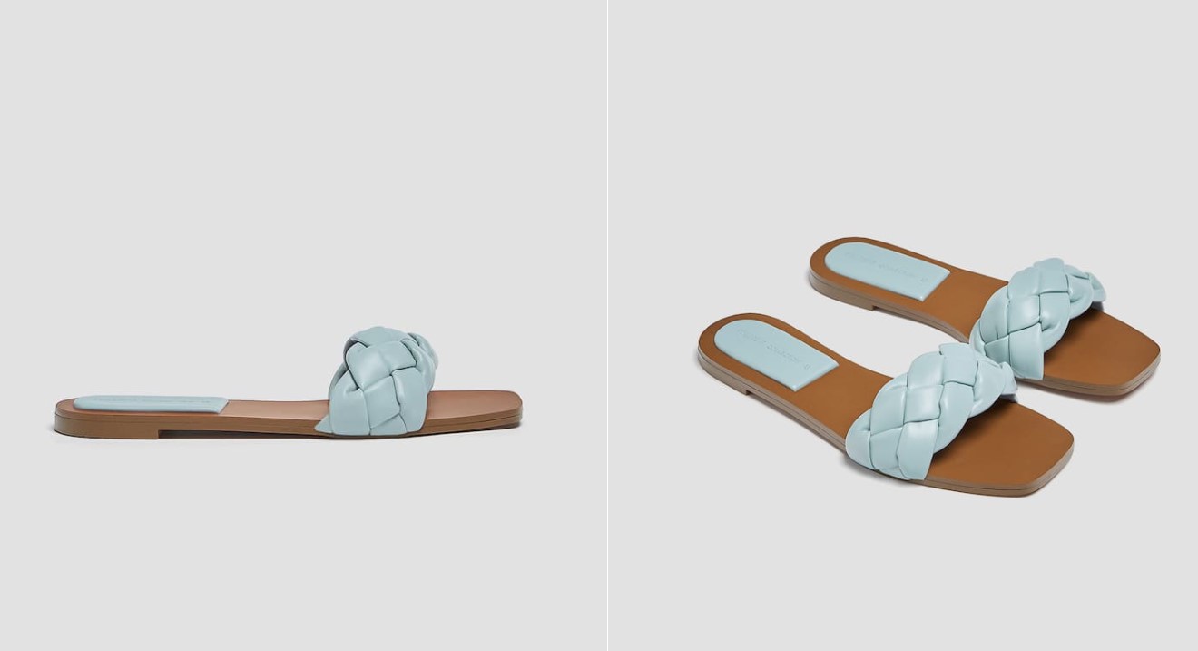 En la sección rebajas de Pull&Bear también vimos esta sandalia plana con detalle de tira trenzada en la parte delantera. Es una tendencia que triunfa este verano y que van a quedar ideales con todo tipo de looks. Está disponible en varios colores: azul claro, como el de la foto, amarillo y malva. Tiene un acabado en punta cuadrada y la altura de la suela es de 1 cm. Su precio es de 9,99 euros.