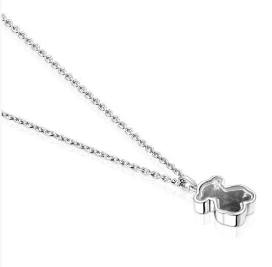 Si hablamos de Tous no podemos dejar atrás su emblema más especial: el oso que siempre está presente incluso en el logo. Por eso, nos gusta tanto este collar elaborado en plata de primera ley del que cuelga el famoso oso compuesto por plata y una piedra ónix.