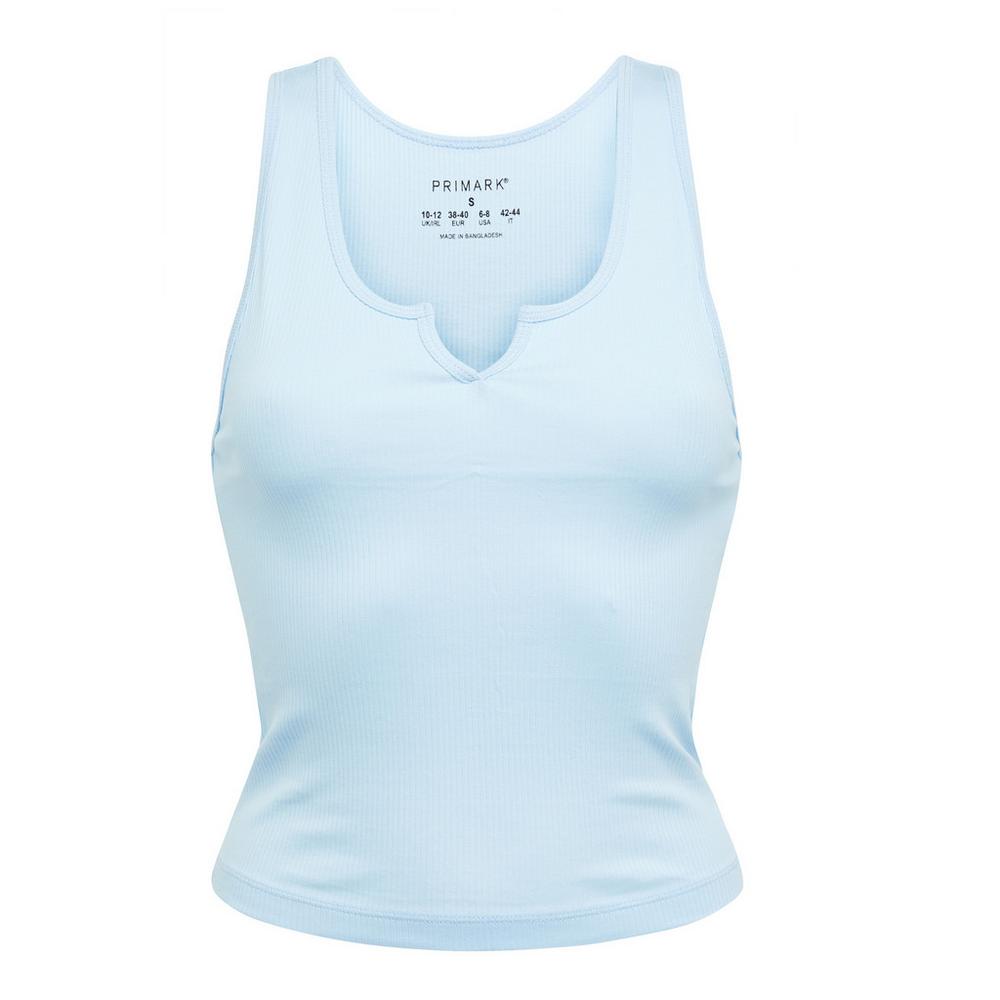 8Camiseta sin mangas azul con abertura en el escote