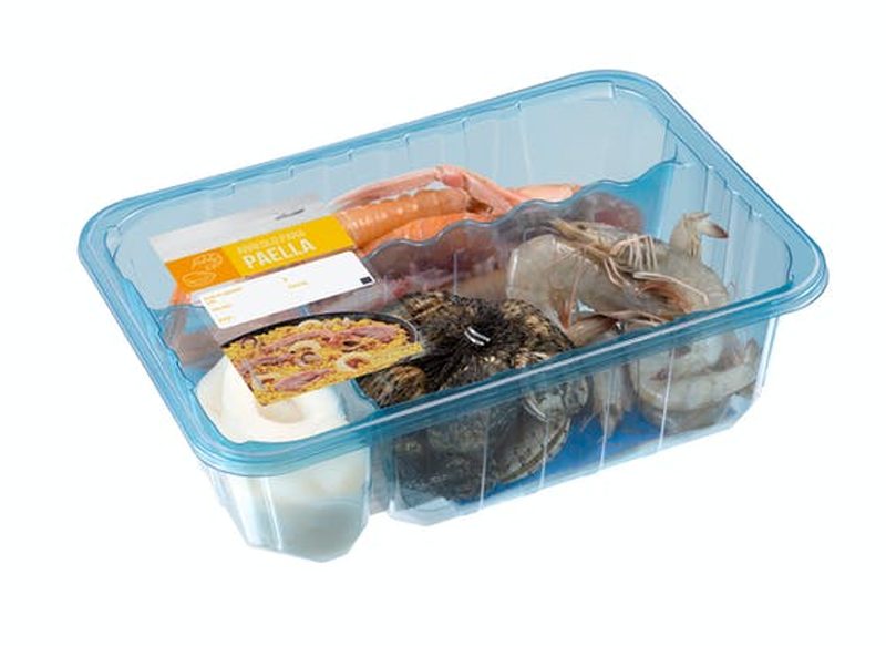 En la cadena de superficies de Juan Roig se encuentra a la venta su arreglo para paella de marisco. Se trata de una bandeja de unos 800 gramos de marisco que tiene un precio de 8,32 euros. En él se encuentran piezas imprescindibles para triunfar a la hora de preparar una paella.