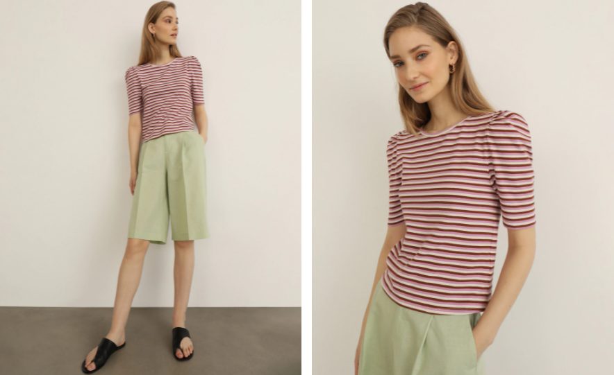 Como ves El Corte Inglés siempre está con descuentazos en algunas prendas, marcas, colecciones o departamentos, más allá de las rebajas de verano y de enero. Es el caso de esta camiseta de mujer a rayas frunce en el hombro en color rojo o morado de Fórmula Joven. Está hecha en material sostenible y El Corte Inglés te lo rebaja un 60% para que solo pagues 4 euros. Es una camiseta cómoda y versátil con un toque femenino, y una vez más fabricada casi enteramente en algodón.