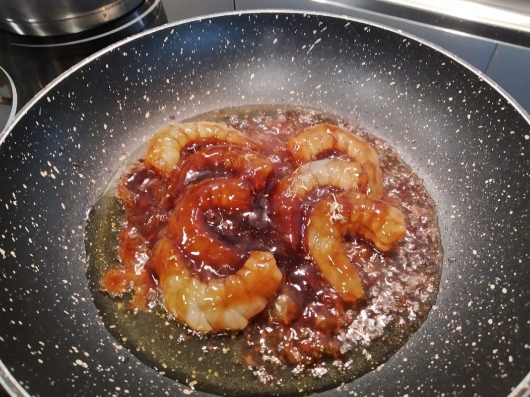 Una vez hayamos realizado la mezcla, ya sea con una salsa teriyaki de bote o con una que hayamos preparado en casa previamente, lo primero que debemos hacer será limpiar bien los langostinos y dejarlos a remojo en el recipiente que hayamos utilizado durante al menos 20 minutos. Aunque lo ideal, para que cojan más sabor, es que maceren en la salsa durante una o dos horas, con una media hora suele ser suficiente si tenemos un poco de prisa.