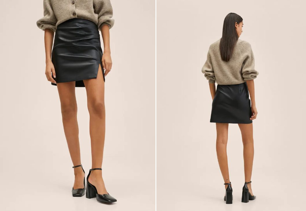 Las prendas de efecto piel cuentan con la virtud de no pasar nunca de moda. Si quieres incluir en tu armario una falda atemporal ideal para todas las ocasiones, sobre todo para la próxima temporada, esta de Mango será tu favorita. De corte mini y diseños ajustado en la cintura, quedará bien con todas tus prendas. Además, ahora tiene un precio de solo 15,99 euros cuando antes costaba 25,99.