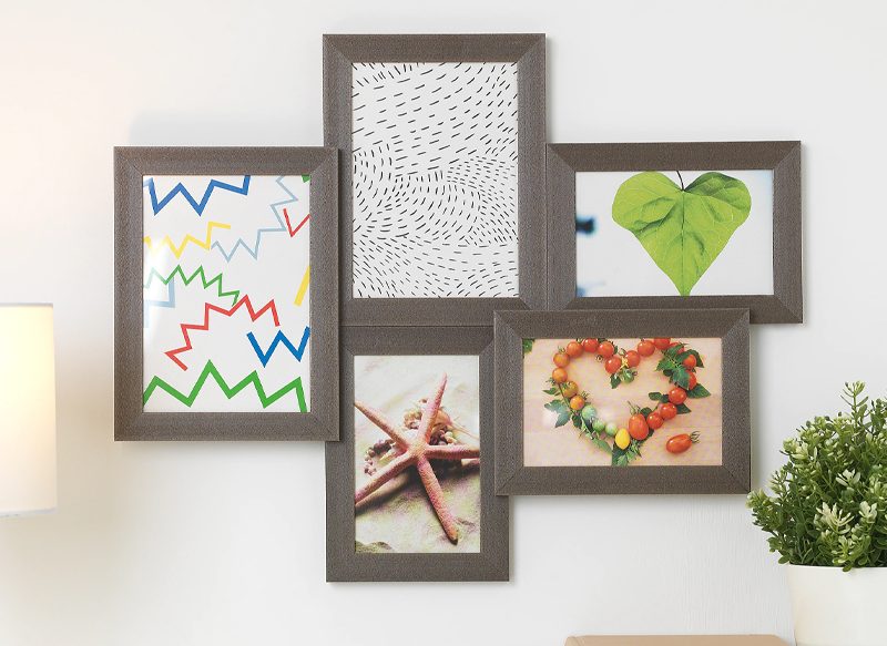 En el outlet de Ikea se pueden encontrar numerosos artículos para el hogar con fines decorativos. Uno de los más interesantes es este marco de fotos EDESTAD. Es un modelo que cuenta con espacio para cinco fotografías, algunas de ellas dispuestas de manera vertical y otras de forma horizontal, creando un conjunto muy interesante para cualquier habitación del hogar.