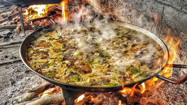 A continuación bajamos el fuego al mínimo, pero sin perder el hervor y sumamos 7 minutos más. Al final subimos el hervor al máximo 1 minuto más para conseguir el famoso socarrat o socarraet, el arroz quemado de la base. Finalmente apagamos el fuego y dejamos reposar 5 o 10 minutos tapado con un paño o papel de aluminio. Uno de los trucos más importantes para los amantes de la paella tradicional es prepararla siempre en fuego, nunca en vitrocerámica o inducción. La diferencia se nota mucho.