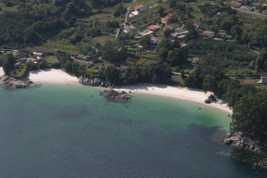 Es una playa aislada virgen de afluencia media en verano, ubicada en el municipio de Cangas. Junto con las calas de Xián y Castiñeiras forman una concha de arena de belleza singular, además son idóneas para la práctica de deportes náuticos. Cuenta con papeleras y servicio de limpieza diario. Como todas las playas de la Ría de Aldán son de arena blanca y de aguas tranquilas, ideales para ir con niños. Las playas de esta zona son de difícil acceso, con escasos lugares para aparcar, aunque hay varias fincas privadas que tienen servicio de aparcamiento por unos 3 € el día.