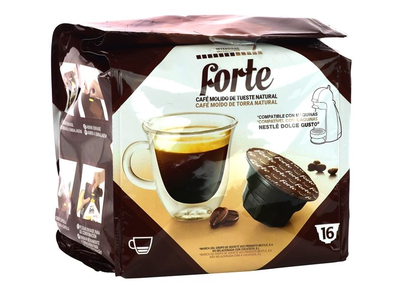 Una alternativa a la anterior para quienes posean una cafetera Nestlé Dolce Gusto son las cápsulas de café Cocatech Forte Intensidad 7 de Mercadona. En los supermercados de la cadena valenciana se puede encontrar este café molido de tueste natural de intensidad 8 sobre 10.