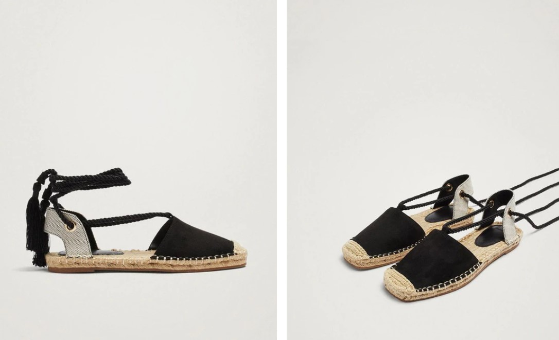 Se trata de unas alpargatas de lo más simples, pero que pueden llamar la atención. Mezclan colores tal como el crudo y negro, lo que hace posible que las podamos usar en conjunto con cualquier ropa para cualquier ocasión sin importar qué. Su diseño retro no se queda atrás pese a ser un diseño clásico. Tienen tiras que van atadas al tobillo que crean un impacto visual increíble, las cuales además sirven como cierre. Las puntas de estas alpargatas son cuadradas y también cuentan con un detalle en los talones. Si quieres hacerte con ellas, basta con hacer un solo clic en la página web de Parfois o El Corte Inglés.