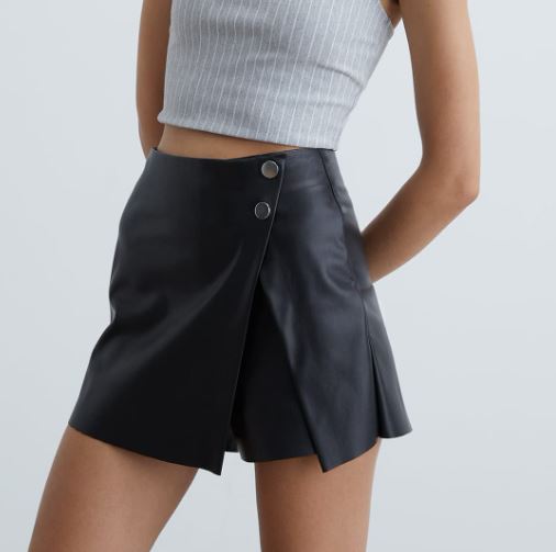 Si eres una amante de las faldas pero te resulta más cómodo llevar pantalones, esta falda pantalón de tiro alto con efecto piel de Stradivarius es una opción genial para llevar tanto a la oficina como a una cena ya que es elegante a la vez que cómoda. Su detalle cruzado con toques metálicos en la parte delantera le da un toque diferente y original. Puedes encontrarla por solo 19,99 euros tanto en tienda como en la web y sigue disponible en todas las tallas.