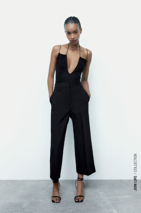 Otra de las novedades más bonitas de Zara de esta semana es este pantalón cropped culotte de tiro alto con cintura elástica, pernera ancha y bolsillos delanteros, que está disponible tanto en negro como en beige y que ya se ha empezado a agotar en algunas tallas. Su precio es de 27,95 y es una de las prendas más versátiles que te vas a encontrar en esta lista ya que sirve para absolutamente cualquier ocasión y sienta bien a todo el mundo.