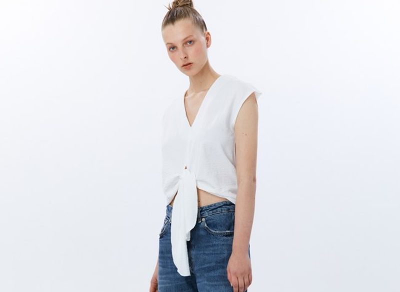 En el extenso catálogo de prendas de la marca de ECI podemos encontrar también esta camiseta fluido nudo que está rebajada desde los 13,99 euros a 9,99 euros. Está a la venta en colores blanco, rosa y verde.