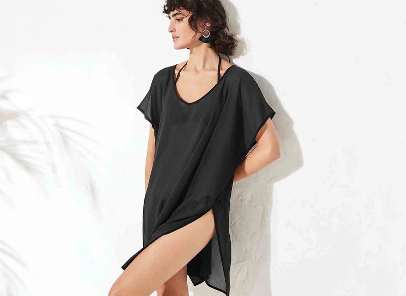 Se trata de una túnica playera estilo poncho con oberturas laterales y tejido vaporoso ligeramente transparente. Tiene cuello de pico y aberturas laterales largas, estando fabricado en 100% poliéster. Se vende por 6,99 euros gracias a su descuento del 22% sobre el PVP original de 8,99 euros.