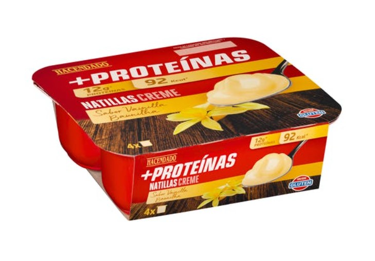 Las Natillas creme sabor vainilla en su gama +Proteínas de Hacendado se elaboran en Francia con el objetivo de mejorar el aporte proteico. Con esto, se trata al mismo tiempo de reducir el azúcar añadido y las grasas menos sanas que tendrían los lácteos tradicionales. Su principal ingrediente es la leche desnatada y está edulcorado, aporta 12 gramos de proteínas de alto valor biológico y 92 kcal de energía. Su precio es algo más elevado, 1,60 euros, pero el pack incluye cuatro unidades. Un alimento muy tentador para seguir una dieta equilibrada.