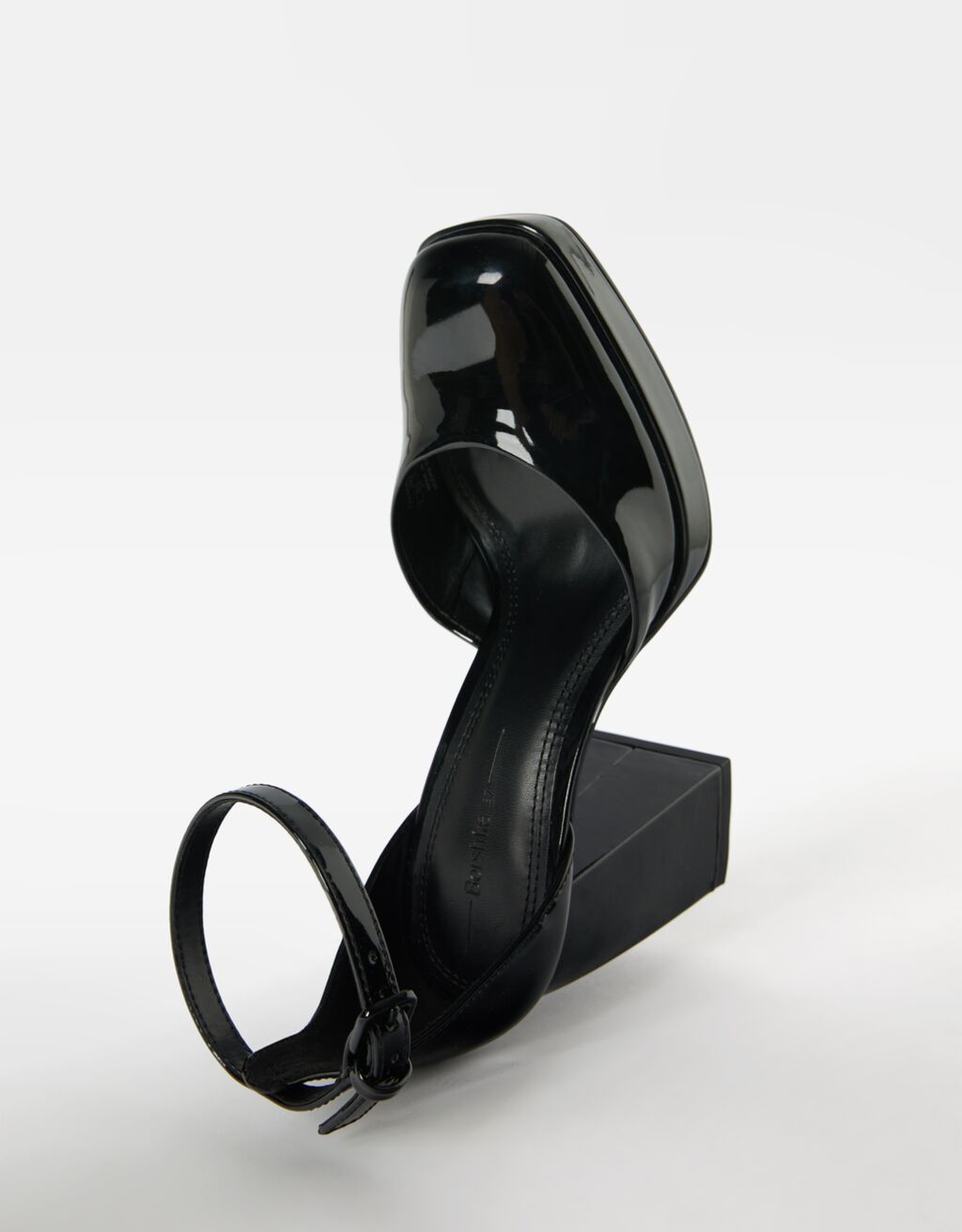 El acabado en estilo charol es uno de esos que nunca falla. Este es uno de los motivos por los que estos zapatos de tacón de Bershka resultan tan llamativos y efectivos. Además, se atan al tobillo a través de una pulsera para mantener el equilibrio. Por supuesto, combinarán con todo gracias a su color negro y los puedes conseguir por solo 29,99 euros.
