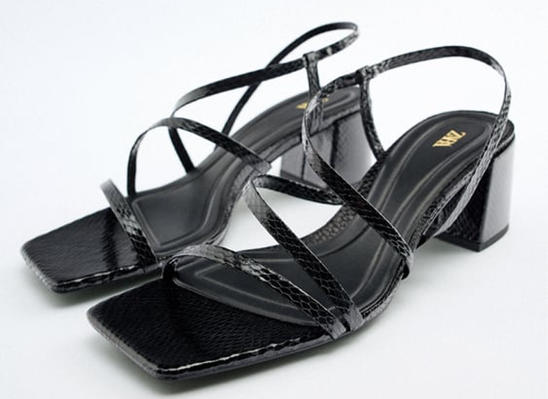En el extenso catálogo de calzado de Zara podemos encontrar esta sandalia tacón ancho medio. Es un modelo versátil y cómodo disponible en negro y amarillo que se vende por un precio de tan solo 25,95 euros.