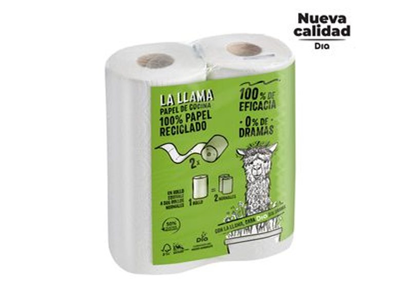 En Día está a la venta otro de los papeles para el hogar que se recomiendan, como es el papel de cocina reciclado DIA LA LLAMA, que se vende por 2,09 euros en un formato de dos unidades. De esta manera, el precio aproximado de cada rollo es de 1,05 euros.