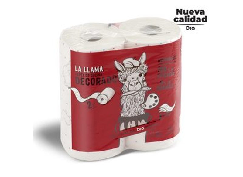 El papel de cocina decorado tres capas DIA LA LLAMA es uno de los papeles para el hogar más populares del supermercado y uno de los mejores que se pueden encontrar actualmente. Se vende por 2,45 euros el paquete de dos unidades, lo que supone un precio unitario de 1,23 euros.